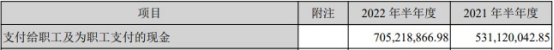 今年上半年,国元证券支付给职工及为职工支付的现金为7.05亿元,上年同期为5.31亿元。
