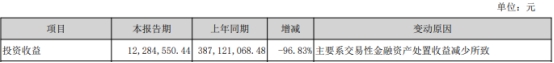今年上半年,国元证券实现投资收益1228.46万元,同比减少96.83%,主要系交易性金融资产处置收益减少所致。