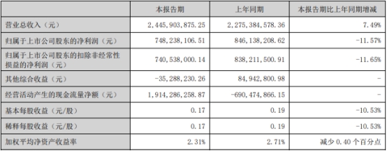 2022年1-6月,国元证券基本每股收益为0.17元/股,同比减少10.53%;加权平均净资产收益率为2.31%,比上年同期减少0.40个百分点。