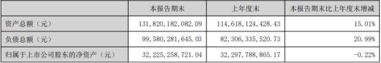 截至2022年6月末,国元证券资产总额为1318.20亿元,比上年度末增长15.01%;负债总额为995.80亿元,比上年度末增长20.99%。