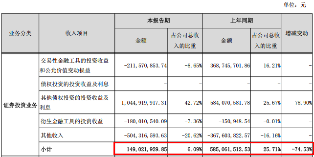 数据显示,国元证券2022年上半年净利下滑主要受自营业务影响,其中权益类投资收益由2021年同期盈利3.68亿元下滑至今年中报的亏损2.11亿元,致使整体自营业务收入同比下滑了74.53%,收入占比由25.71%下滑至6.08%,