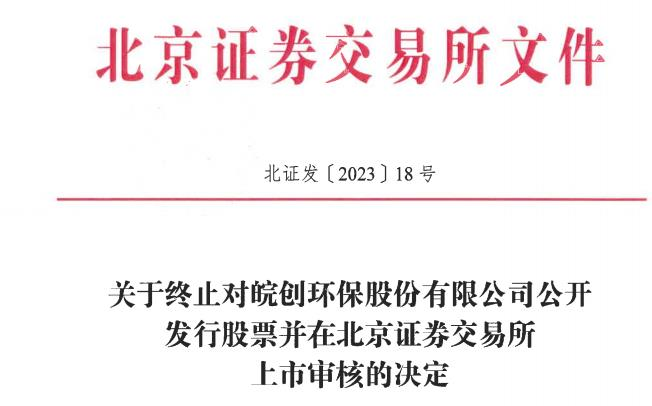 北交所于2022年8月18日受理了皖创环保提交的公开发行相关申请文件,并按照规定进行了审核。2023年3月10日,皖创环保向北交所提交了《皖创环保股份有限公司关于撤回向不特定合格投资者公开发行股票并在北京证券交易所上市申请文件的申请报告》。根据《北京证券交易所向不特定合格投资者公开发行股票并上市审核规则》第五十三条的有关规定,北交所决定终止皖创环保公开发行股票并在北京证券交易所上市的审核。