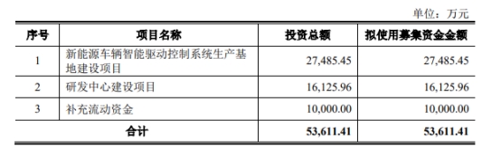 嘉晨智能原拟在上交所科创板发行股份1,700万股,占本次发行后总股本的比例为25.00%;原拟募集资金53,611.41万元,用于新能源车辆智能驱动控制系统生产基地建设项目、研发中心建设项目、补充流动资金。