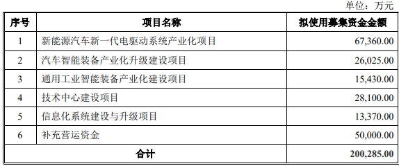 巨一科技2021年11月5日披露招股书显示,公司拟募资20.03亿元,计划用于新能源汽车新一代电驱动系统产业化项目、汽车智能装备产业化升级建设项目、通用工业智能装备产业化建设项目、技术中心建设项目、信息化系统建设与升级项目、补充营运资金。