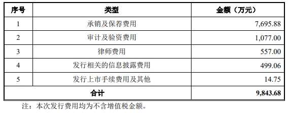 巨一科技本次发行费用总额为9843.68万元,其中国元证券和中金公司赚得承销及保荐费用7695.88万元。