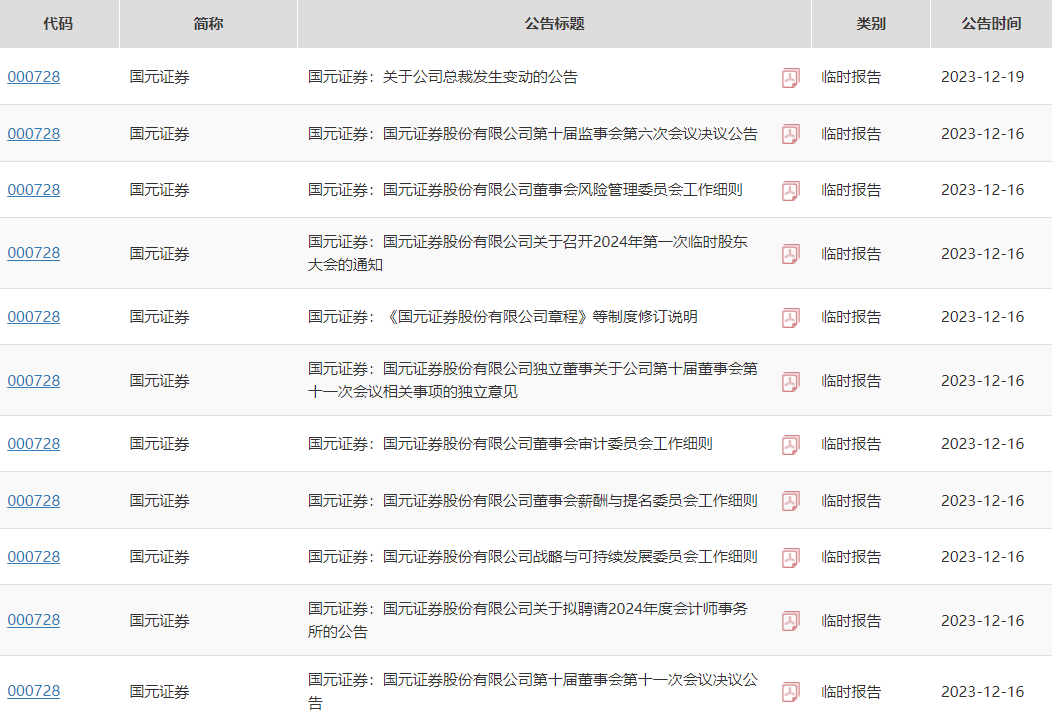 稍早之前,国元证券在12月15日连发多份公告,宣布包括总裁变更在内的多起重大事项。