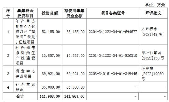 贝克制药原拟在上交所科创板发行不超过2,700.00万股,不低于本次发行后公司总股本的25%。公司原拟募集资金141,963.00万元,分别用于年产单方制剂6.5亿粒以及“鸡尾酒”制剂5亿粒项目、利托那韦原料药生产线建设项目、研发中心建设项目、补充营运资金。