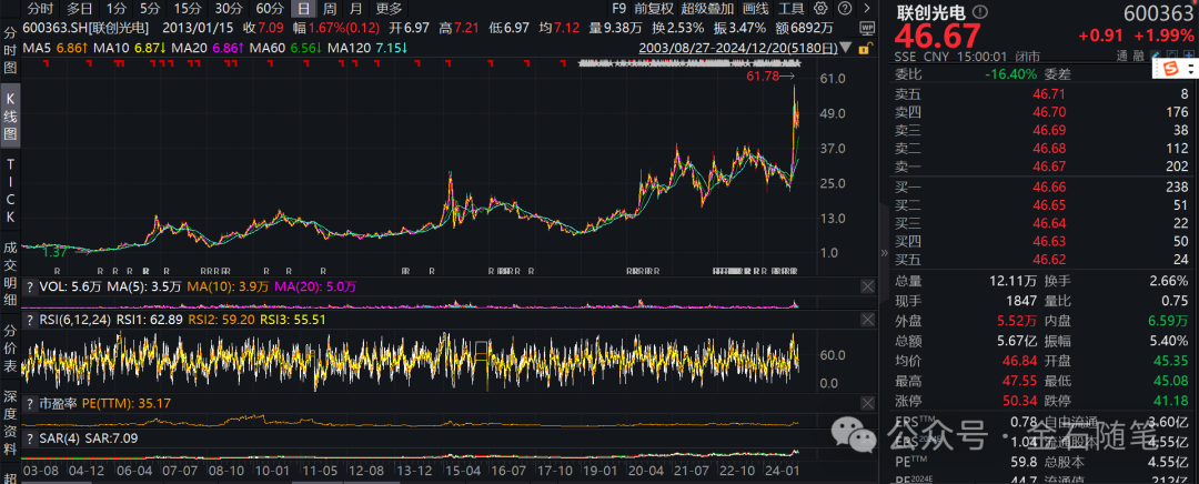 3)这位52岁老股民可谓是拖家带口,将妻子儿子、公司的账户都用上了,但很遗憾巨亏300多万。叶某娜是蔡义贤配偶,普通账户开立于2006年8月24日,信用账户开立于2012年6月13日。2006年11月2日至2023年6月5日期间,蔡义贤使用“叶某娜”证券账户持有、买卖“深康佳A”“联创光电”等多只股票,盈利34.8万。(金石举例:拉长时间来看,联创光电确实是涨的,涨了7倍多)