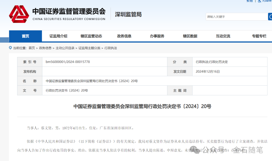 2024年12月16日,深圳证监局公布一则处罚措施,真的看着心疼,闻着落泪,妥妥的一枚普通韭菜长期炒股悲催的日常。