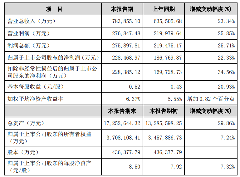 同一天,国元证券率先披露了2024年业绩快报:营业收入78.39亿元,同比增长23.34%;归属于上市公司股东的净利润22.85亿元,同比增幅为22.33%;因本年度实现净利润增加较多,同时上年度存在信用减值转回等因素,归母扣非净利润22.84亿元,同比增长34.56%。