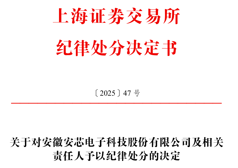 对安徽安芯电子科技股份有限公司予以1年内不接受其提交的发行上市申请文件的纪律处分,对汪良恩、方月琴予以公开谴责。