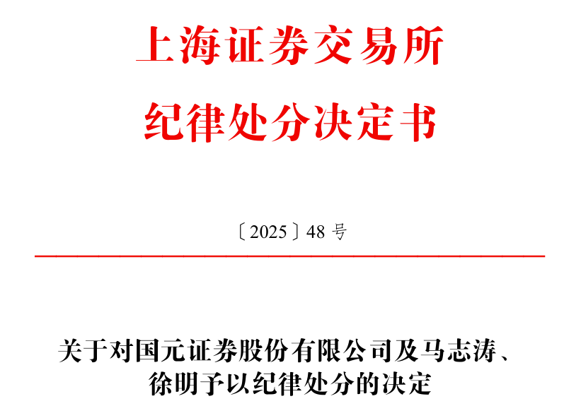 对国元证券股份有限公司予以通报批评,对马志涛、徐明予以6个月内不接受保荐代表人签字的发行上市申请文件及信息披露文件的纪律处分。