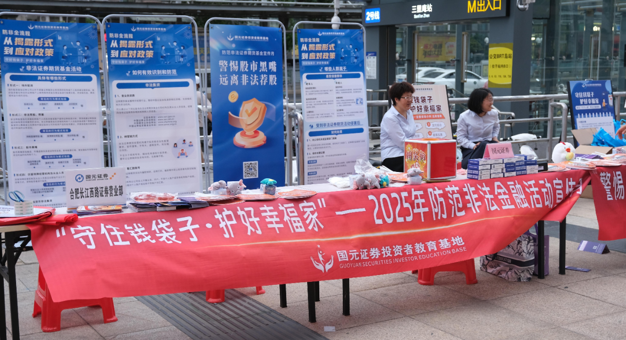 为积极响应防范非法集资宣传号召,提升社会公众风险防范意识,6月18日,国元证券投资者教育基地和公司合规法务部联合中共合肥市蜀山区委员会、合肥市蜀山区人民政府、合肥市蜀山区财政局、合肥市公安局蜀山分局等单位,在之心城广场成功举办“守住钱袋子?护好幸福家”防范非法集资主题投教活动。此次活动得到安徽省委金融工作委员会的指导,吸引了众多市民参与,取得了良好的宣传教育效果。