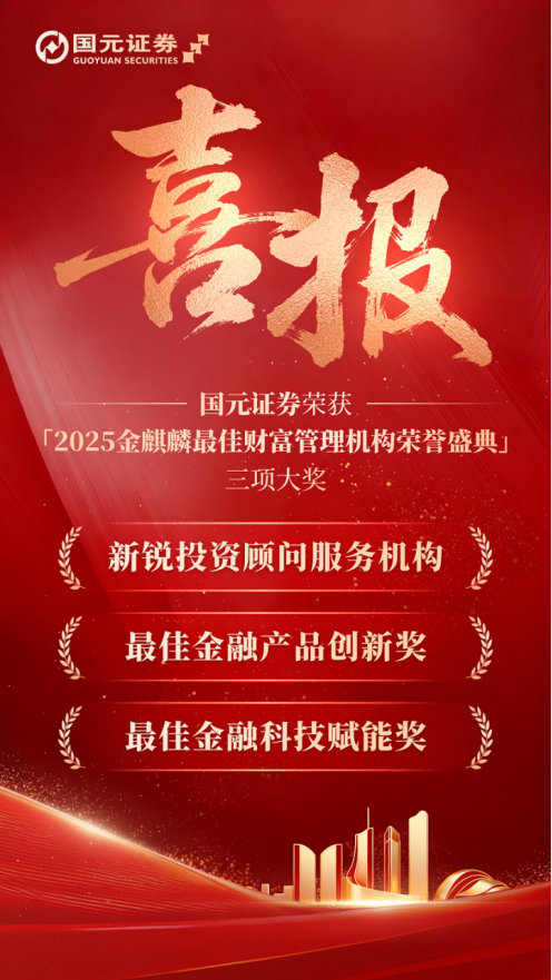 1月15日,由新浪财经主办的“2025金麒麟最佳财富管理机构、最佳投资顾问盛典”在北京举行。国元证券凭借在财富管理领域的卓越探索与亮眼实践,一举斩获“新锐投资顾问服务机构”“最佳金融产品创新奖”“最佳金融科技赋能奖”多项大奖。