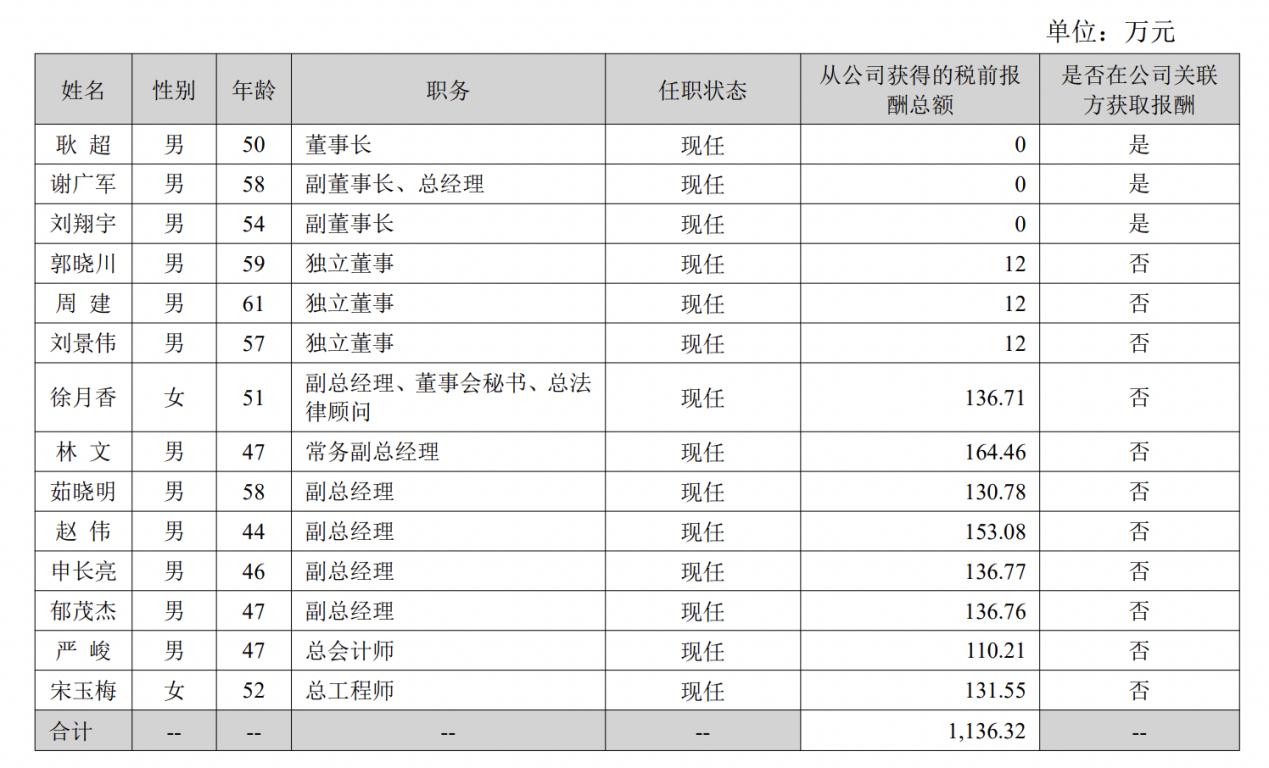 另外,董事长耿超、副董事长刘翔宇以及总经理谢广军在公司关联方处获取薪酬。