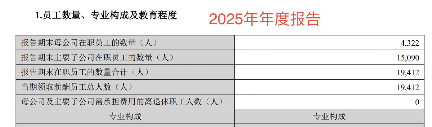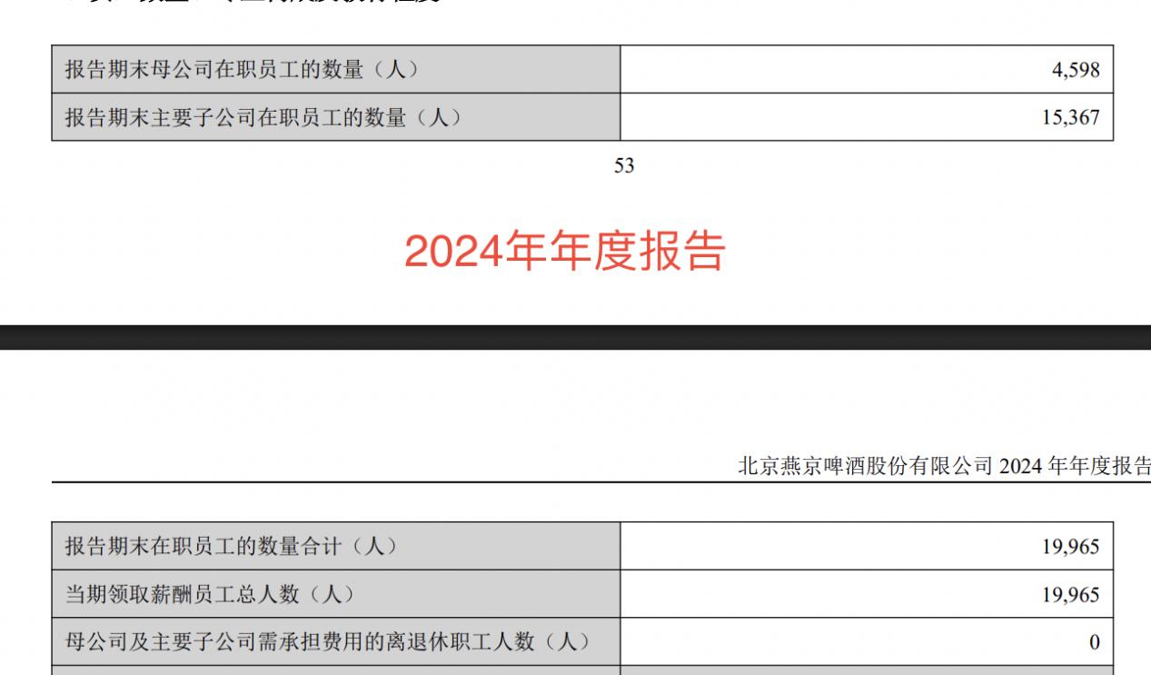 截至2025年末,燕京啤酒在职员工的数量合计为19412人,较2024年末的19965人减少553人,减幅为2.77%。其中,母公司在职员工的数量为4322人,主要子公司在职员工的数量为15090人。