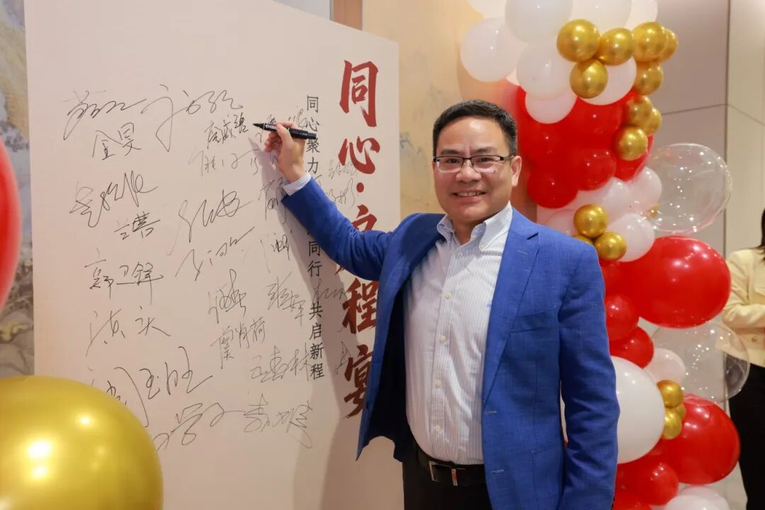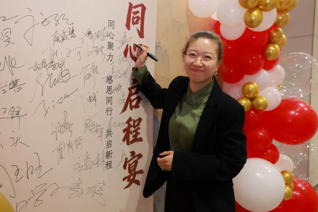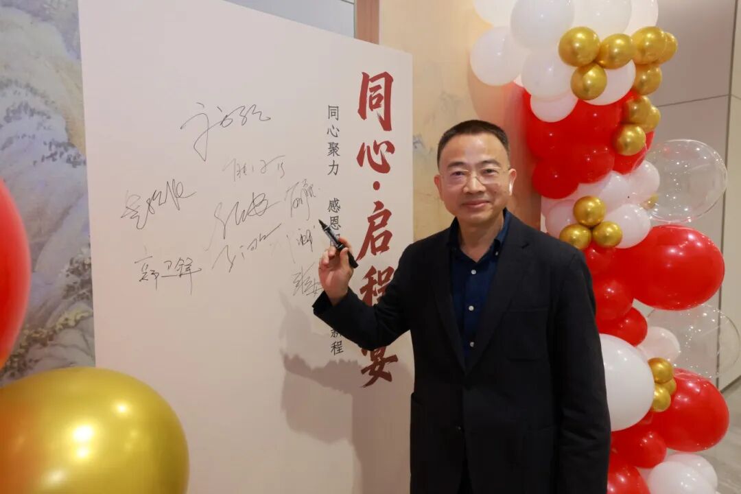 傍晚时分,华灯初上。与会嘉宾陆续在签名墙前留影打卡,穿过寓意“同心协力”的同心门。背景音乐《健康快乐普洛梦》轻柔流淌,现场温馨而庄重。没有严肃的会议桌,只有敞亮的餐厅——正如主持人何春在开场中所言:“今晚,我们不仅要开一场严肃的会议,而且也是为了赴一场有温度、有情怀的‘同心·启程宴’。”