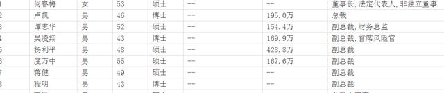在东方财富网最新显示的公开薪酬中,杨利平的薪酬为428.8万,而公司总裁卢凯不过195万,这个数目虽然不及杨利平2020年997.4万元的薪酬,但相较其他人而言已经是非常多了。