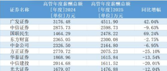 广发证券高管薪酬已遥遥领先行业,堪称券商“薪酬天花板”。年报数据显示,2025年广发证券多位高管涨薪超过百万元。