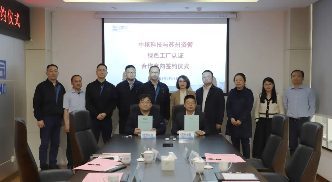 4月11日下午,中核苏阀科技实业股份有限公司与苏州资产管理有限公司就绿色工厂认证合作意向举行签约仪式。苏州资管董事长万为民、副总裁王虎,中核科技党委书记、董事长马瀛,副总经理徐兴华出席签约仪式,双方相关业务员人员参加并见证了签约仪式。
