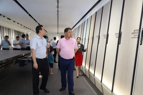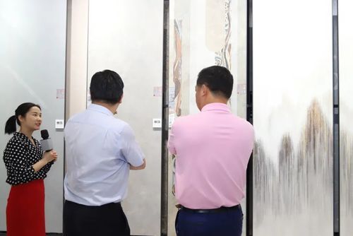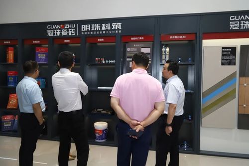 在邓总的带领下,汪董事长一行参观了冠珠瓷砖品牌总部展厅——冠珠瓷砖五感体验馆。冠珠五感体验馆是由新明珠设计院联合日本VMD+五感空间设计师大高启二、日本新生代内装设计师吴胜人设计,代表着行业展厅设计水平的新高度。汪董事长近距离接触体验冠珠旗下各品类的最前沿产品阵容:石墨烯智控发热瓷砖、华脉IP岩板、护墙岩板等,以及冠珠岩板智能整装家居定制解决系统。