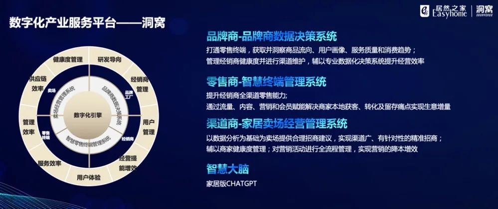 ②管理的数字化:对居然之家的后台,包括人力行政财务,以数字化对内提升管理效率和服务能力,对外开放赋能。
