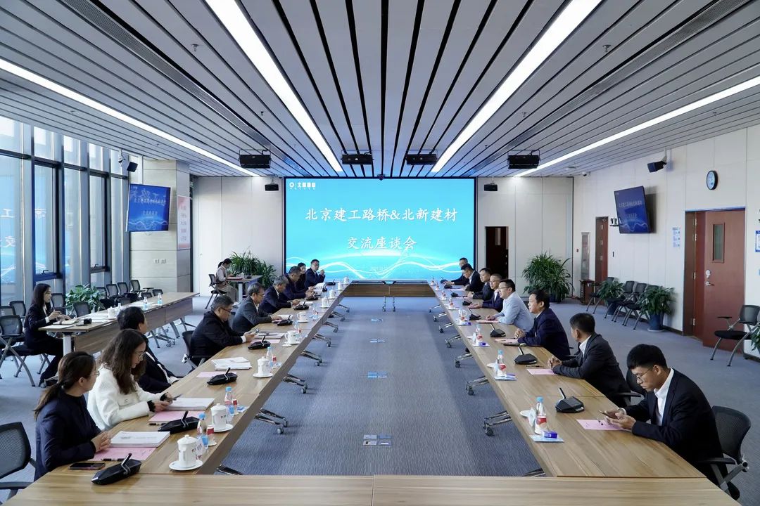 北京建工路桥集团副总经理历勇、副总经理刘丙宇、副总经理杨轶、市场营销中心副总经理高阳、物资设备部经理朱伟华,北京天拓咨询有限公司经理李宝琴,北新建材南方公司北方公司总经理邱洪,北新防水副总经理张弘、华北战区总经理王正、北京公司总经理李儒松,北新建材战略营销部战略客户总监李少聪参加座谈和签约仪式。