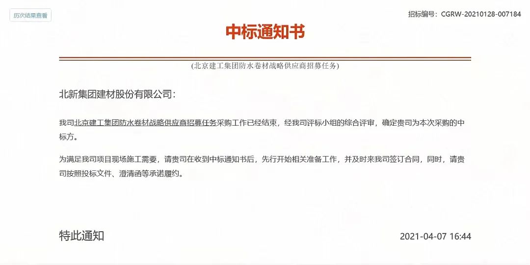 10月12日,北京建工路桥集团有限公司(下称“北京建工路桥集团”)与北新建材战略合作签约仪式在北新科学院举行。北京建工路桥集团董事长邵继有与北新建材党委书记、董事长王兵代表双方签约。北京建工路桥集团总经理郑煌宇、常务总经理程飞,北新建材总工程师董占波,北新建材总经理助理、北新防水总经理丁尚华见证签约。根据协议,双方将坚持优势互补,全面采用北新防水材料体系,拓展合作范围,实现共同发展。