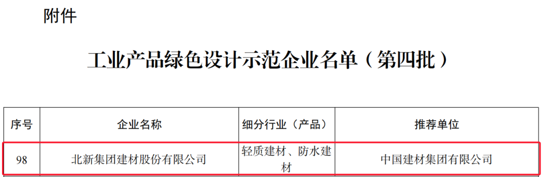 11月22日,工业和信息化部公布了第四批工业产品绿色设计示范企业名单,北新建材再添国家级荣誉——获评“工业产品绿色设计示范企业”。