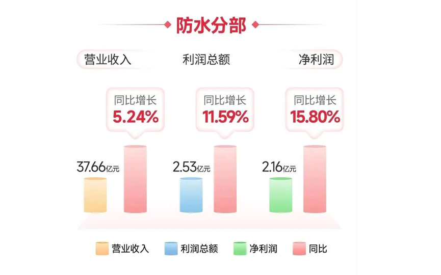 防水业务同样展现出强劲的增长势头,净利润增长15.80%的背后是战略重组带来的协同效应。