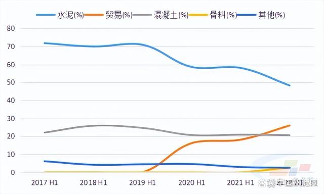 近年来公司的水泥业务营收占比持续下降,上半年降至五成以下。与此同时,公司积极拓展“水泥+”业务,贸易营收大幅增长40.92%,加之骨料业务发力,对冲了水泥业务规模下滑带来的影响,为公司营收提供了支撑作用。不过,公司的贸易业务利润微薄,毛利率仅0.34%,对公司总利润贡献较小。