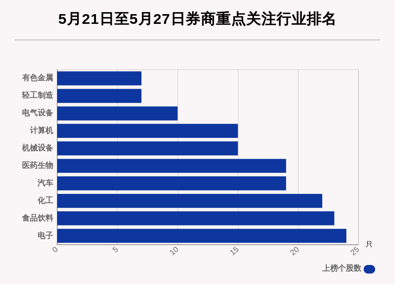 从券商对行业的关注度来看,券商关注个股数居前的行业分别是电子、食品饮料、化工。