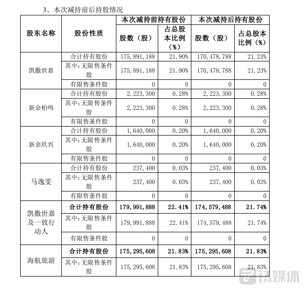 钛媒体APP发现,这是海航旅游时隔三年再次重回*ST凯撒第一大股东之位。