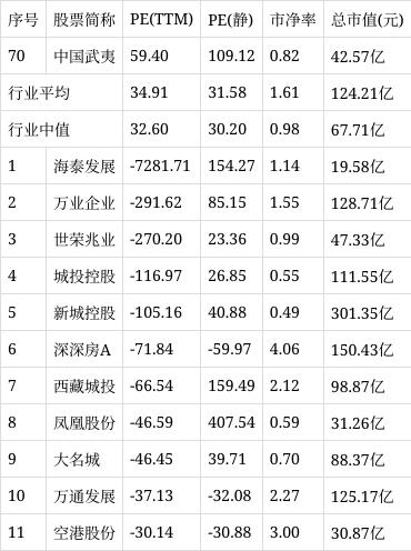 从行业市盈率排名来看,公司所处的房地产开发行业市盈率平均34.91倍,行业中值32.60倍,中国武夷排名第70位。