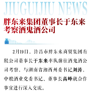 2月24日,酒鬼酒官方微信公众号发了一则消息:胖东来集团董事长于东来考察酒鬼酒公司。