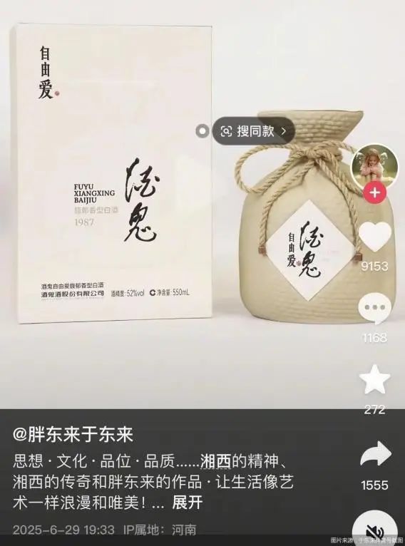 近日,胖东来创始人于东来在其抖音账号发布了“酒鬼酒·自由爱”新品外观,并配文进行宣传预热。而酒鬼酒相关负责人也对外证实,产品将于近期上市。