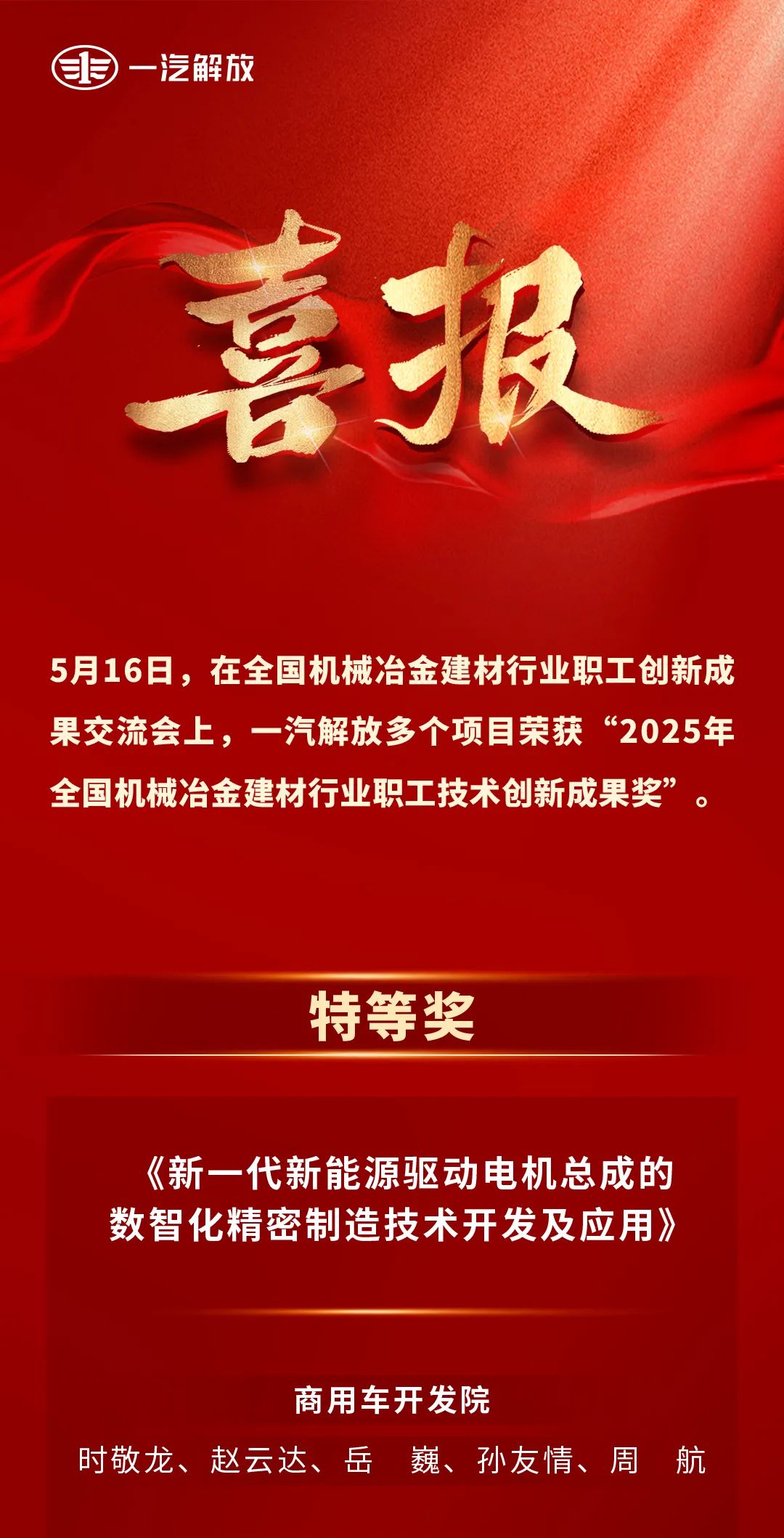 一汽解放多个项目荣获“2025年全国机械冶金建材行业职工技术创新成果奖”