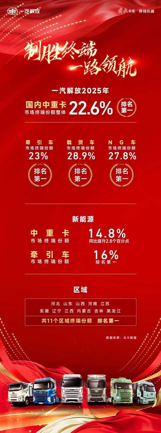 制胜终端 一路领航|一汽解放2025年国内中重卡市场终端份额整体排名第一