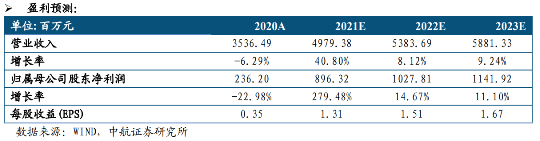 我们认为,公司遵循“化工、军工、电子”三大板块共同发展的经营策略,以化工、军工板块为底层资产,做大做强电子板块,化工板块当前处于行业景气周期,化工品价格维持高位提振公司规模、毛利率;军工板块受益“十四五”期间军工信息化、自主可控逻辑,产品谱系从数字芯片向模拟芯片扩张,迎来业绩新增长点,电子板块业务受益5G基站建设大潮拉动天线需求,泓林微发力射频芯片,威科射频受益高速高频材料国产化趋势。基于以上观点,我们预计公司2021-2023年的营业收入分别为49.79亿元、53.83亿元和58.81亿元,归母净利润分别为8.96亿、10.28亿、11.41亿,EPS分别为1.31元、1.51元、1.67元,公司10月28日收盘价34.20元,对应2021-2023年PE为26.05倍,22.71倍,20.44倍。基于公司所处行业地位以及产品未来的发展前景,我们维持“买入”评级,目标价38.00元,对应2021-2023年PE分别为28.94倍、25.24倍、22.72倍。