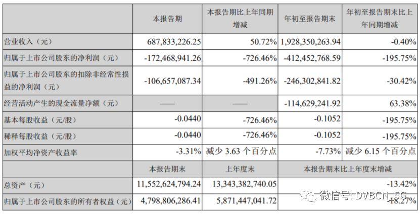 经DVBCN的梳理,在第三季度的业绩中,中信国安共实现营业收入为6.88亿元人民币,同比增长了50.72%;其归属于上市公司股东的净利润为亏损1.72亿元,同比减少了726.46%。
