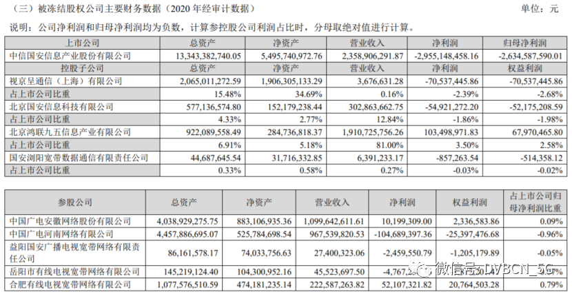 被冻结的广电网络相关资产情况
