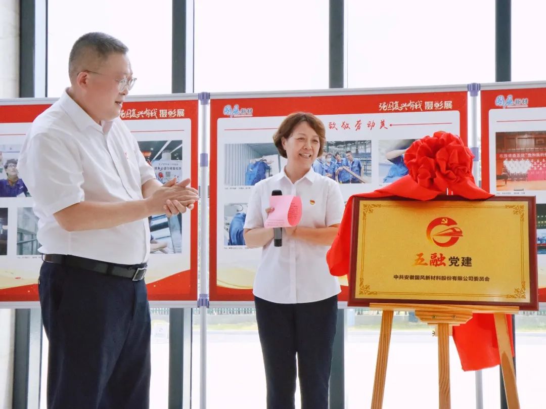 凸显党建领航,融入生产经营,共建美好国风。7月19日下午,国风新材党委正式发布“五融”党建工作品牌。党委书记、董事长黄琼宜出席并揭牌,党委副书记张家安主持揭牌仪式,党委委员、副总经理贾红滢,工会主席程谦,各支部支委成员、党员代表等参加揭牌仪式。