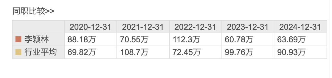 2024年,李颖林薪酬为63.69万元,较上年同期增长2.91万元;康涛薪酬为45.88万元,较上年同期减少4.31万元。