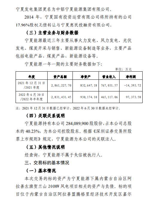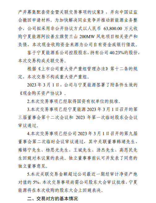 鉴于宁夏能源系公司控股股东,持有公司 40.23%的股份,本次交易构成关联交易,不构成重大资产重组。
