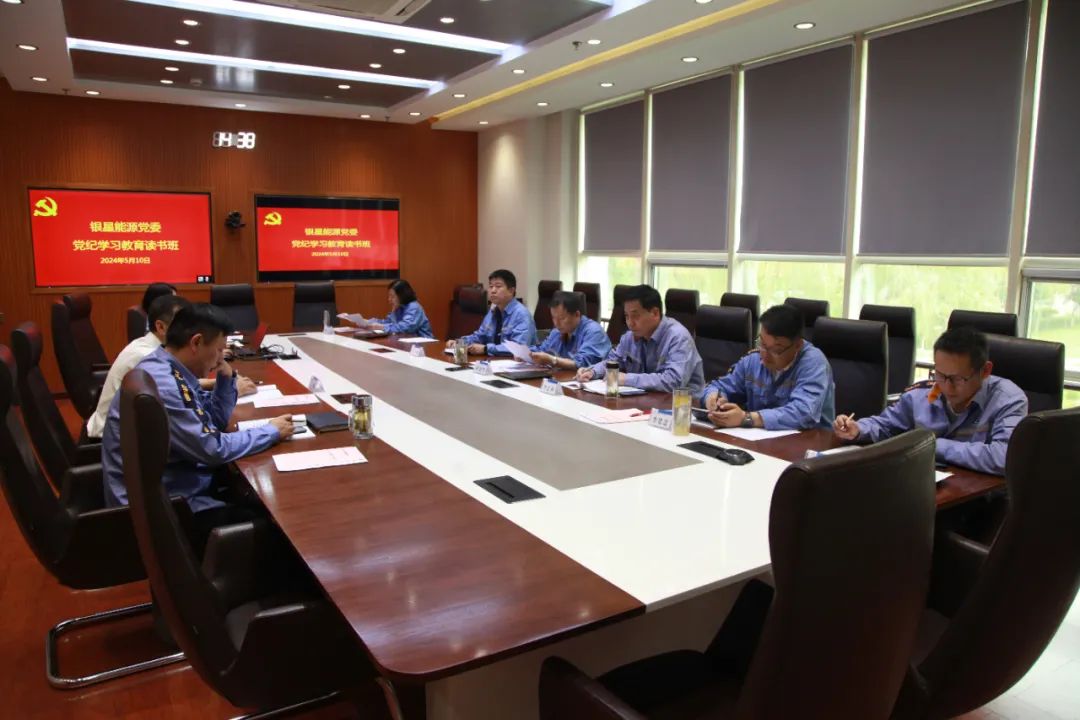 4.2024年4月30日,银星能源党委举办党纪学习教育读书班,银星能源党委班子成员及相关党员干部参加会议。会上,传达学习了中共中央办公厅印发的《关于在全党开展党纪学习教育的通知》《中铝宁夏能源集团有限公司党委关于开展党纪学习教育的通知》文件精神。