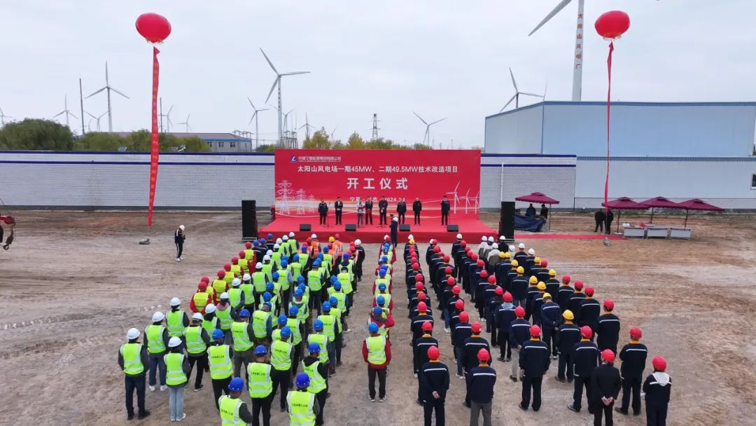 9.2024年10月30日上午10时58分,银星能源太阳山风电场一期45MW、二期49.5MW老旧风机“以大代小”技术改造项目开工仪式在太阳山风电场现场隆重举行。该项目的建设将助推太阳山开发区高质量发展,加快公司绿色低碳转型发展步伐,提升新能源产业盈利能力,为中铝宁夏能源集团建设国内一流能源企业奠定坚实基础。
