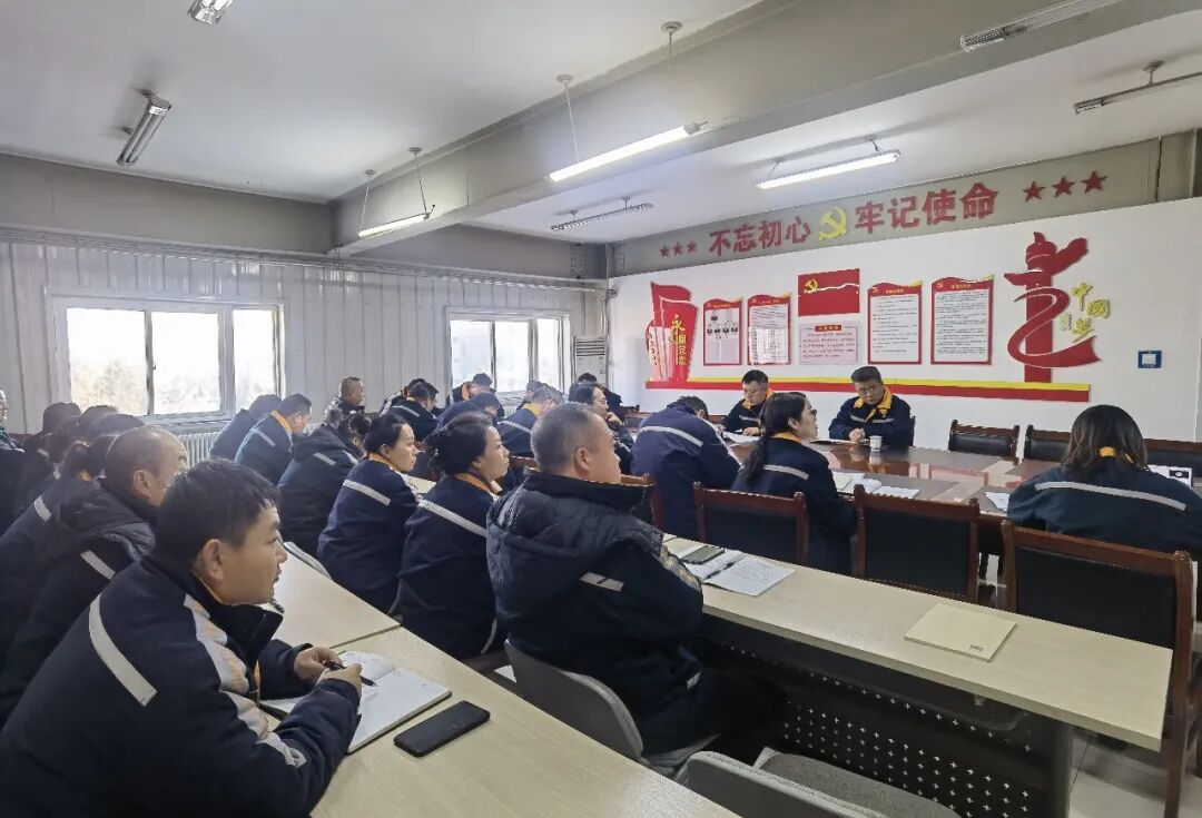 公司财务总监左岩深入陕北运维区域宣讲党的二十届四中全会精神,结合新能源产业数智化发展,从党的二十届四中全会的重大意义,“十四五”时期我国发展取得的重大成就和公司发展成绩,“十五五”时期经济社会发展的重大意义等方面进行了系统宣讲和深入阐释。并强调,近期,陕北地区大范围降雪,道路有积雪,部分风机机位距离场区较远,道路崎岖不平,现场运维人员在驾驶车辆和风机检修时要注意交通安全,做好互保联保;加大设备巡检频次,做好风机叶片和线路覆冰情况的巡视检查工作,定期开展升压站红外测温,确保两个场站设备安全稳定运行;持续深化党的二十届四中全会精神学习贯彻,把党建优势转化为发展优势,在技术创新、提质增效等方面持续发力。