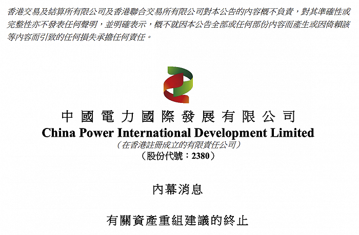 10月11日早间,中国电力在港交所公告:就资产重组建议,经与吉电股份进行多轮讨论和谈判并咨询外部专业顾问后,本公司与吉电股份未能就交易的核心条款达成完全一致。为了本公司、吉电股份及各自股东的利益,双方同意终止资产重组建议。