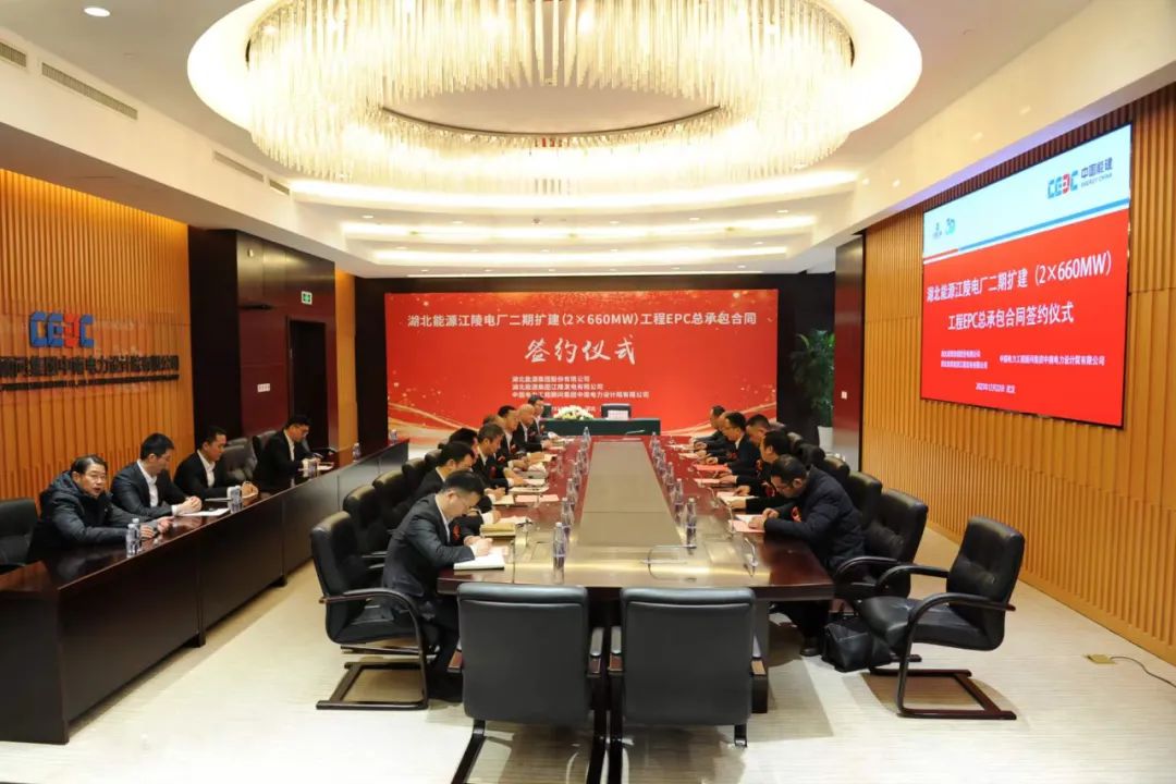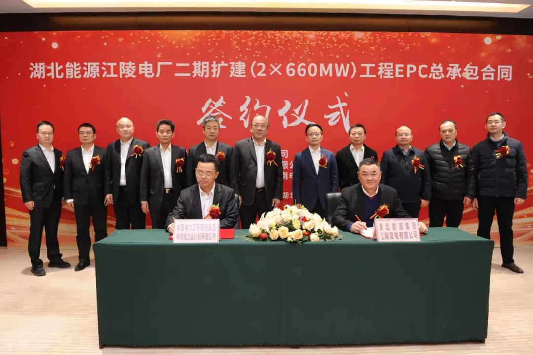 12月22日,湖北能源与中南电力设计院签订江陵电厂二期扩建工程EPC总承包合同。湖北能源董事长、党委书记朱承军,中南电力设计院董事长、党委书记陈新军,总经理尹镇龙见证签约。湖北能源副总经理、党委委员李海滨,中南电力设计院副总经理、党委委员王志军代表双方签订合同。