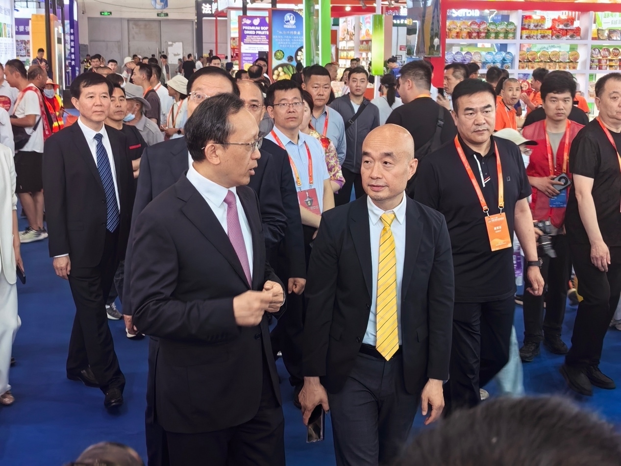 食博如期,双汇同行。5月16日,由中国食品工业协会、中国商业联合会、中国食品和包装机械工业协会、中国食品土畜进出口商会共同主办的第二十二届中国(漯河)食品博览会开幕。据悉,本届食博会共吸引来自12个国家,全国26个省、自治区、直辖市的1268家企业参展。开幕式前,与会领导对本届食博会进行了巡馆。作为漯河本地企业,河南双汇投资发展股份有限公司董事长万宏伟出席了开幕式并深情向长期以来关心支持双汇发展和漯河食品产业的各界朋友表达了衷心的谢意,且于领导巡馆期间现场担当“向导”与“解说”。